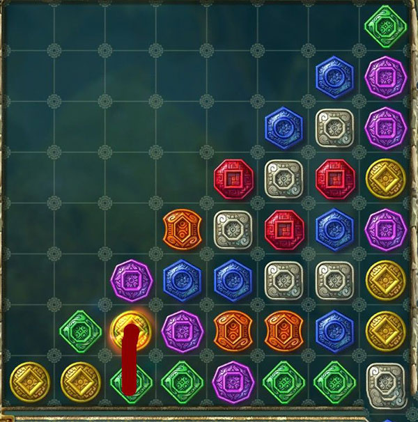 4、看好了后把鼠標(biāo)移回來迅速移動(dòng)看好的石塊,應(yīng)該可以形成連消,這樣分?jǐn)?shù)就上去了。