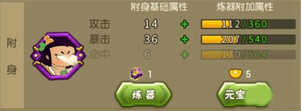 煉器符:法寶2星后娃娃附身可使用,隨機增加1點法寶經(jīng)驗或者2-3點不等的附身加成屬性(需激活法寶星級)。隨著法寶器靈的開啟,使用煉器符煉器進度滿或者煉器中途可以幾率召喚器靈,它的作用也越來越大,