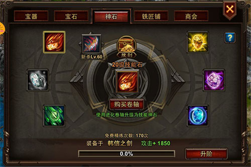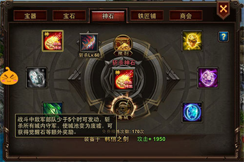 屠城攻城也需一定的條件,當(dāng)玩家擁有6顆技能神石時(shí),即可使用屠城功能。