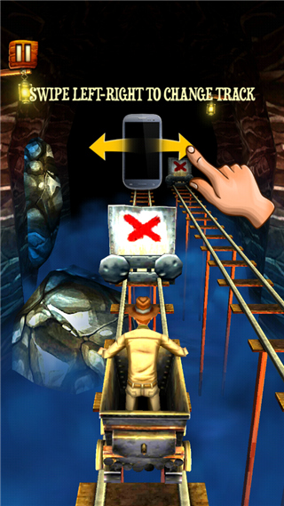 5、礦洞狂奔Rail Rush是一款神廟逃亡類的游戲,玩家將坐在一個地礦軌道的小車上,目的是收集有價值的寶石與金塊,同時還要躲避各種障礙。