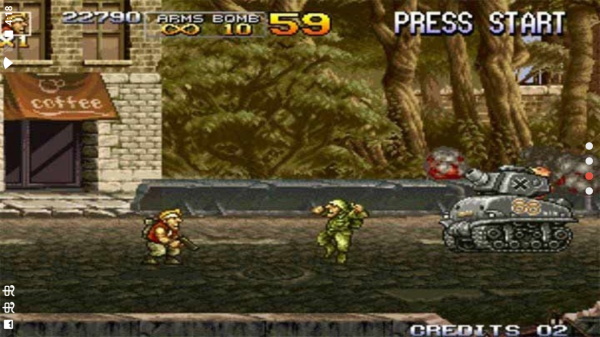 采用經(jīng)典的2D像素點繪畫風(fēng),snk御用畫師作畫,場景角色完美還原,槍械戰(zhàn)車悉數(shù)登場