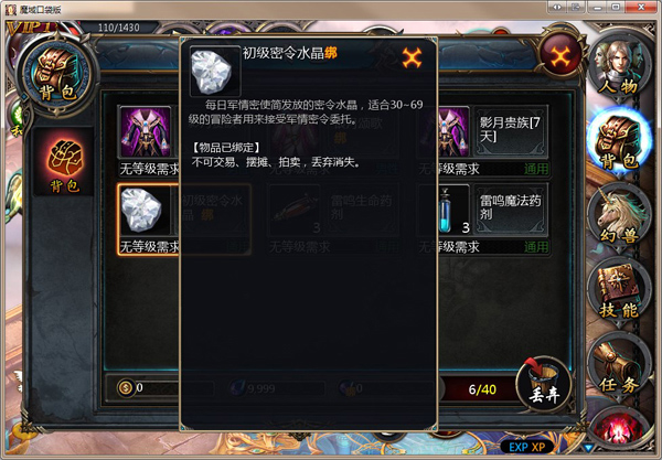凡等級達到30級的冒險者,均可在軍情密使處領取到密令水晶,并可直接通過密令水晶來獲取與自身等級相符的軍情密令委托。