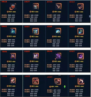 神器的附加屬性有防御、生命、命中、攻擊和閃避五種,這五種屬性則是隨機出現(xiàn)的。綠色品質(zhì)神器只有一條附加屬性,藍(lán)色和紫色品質(zhì)有兩條附加屬性,橙色和紅色有三條附加屬性。一般玩家穿戴的神器主要有紫色、橙色和紅色三種品質(zhì),紫色的最高戰(zhàn)力為2600,橙色的戰(zhàn)力固定為3800,紅色的戰(zhàn)力固定為4900。