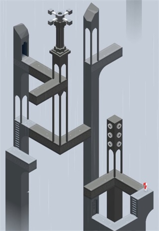 場景三先將建筑轉(zhuǎn)成下圖這個樣子,接著進入傳送門,小人會從中間一層的門出來,再次旋轉(zhuǎn)建筑,組成樓梯,使小人可以向上攀登,最后三次旋轉(zhuǎn)可以帶領(lǐng)小人進入最終的門啦!場景四中的凸弧形墻與凹弧形墻都是可移動的,先利用凸墻移動到前側(cè)灰色按鈕處,再到另一個按鈕處,圖騰出現(xiàn),本章完結(jié)。