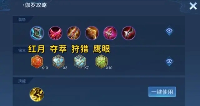 出裝建議包括抵抗之靴、影刃、無盡戰(zhàn)刃等。銘文方面,10紅月、3奪萃、7狩獵、10鷹眼的組合可以提升伽羅的戰(zhàn)斗效果。