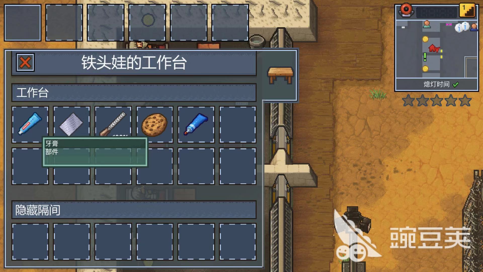 第四步:找牙膏,牙膏也是基礎(chǔ)道具,多去翻翻工作臺(tái)就可以找到,使用牙膏和滑石粉合成油灰團(tuán),最后用油灰團(tuán)和融化的塑料合成制作鑰匙的模板。
