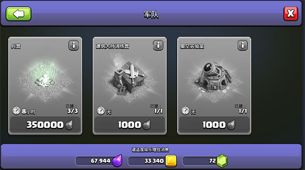 一、資源玩家可在村莊地圖內(nèi),建設(shè)圣水收集器、建筑工人小屋等資源建筑,來生產(chǎn)一些金幣、圣水、暗黑重油等資源。玩家可利用這些資源,來提升建筑等級、訓(xùn)練兵種、提升兵種等級、制作藥水等。