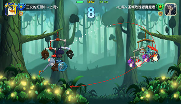 別看這些動(dòng)物這么可愛,打起來(lái)一個(gè)都不含糊。別忘了,這可是款競(jìng)技游戲,雖然打起來(lái)根本沒(méi)有常規(guī)對(duì)戰(zhàn)的緊張感,但也是全球?qū)崟r(shí)PVP的。玩家需要將動(dòng)物們和各種棍繩進(jìn)行組合搭配,選擇最適合自己的方式,將對(duì)面的動(dòng)物擊落繩下。這樣的彈射玩法不需要玩家有多犀利的操作,一鍵瞄準(zhǔn)即可發(fā)射!