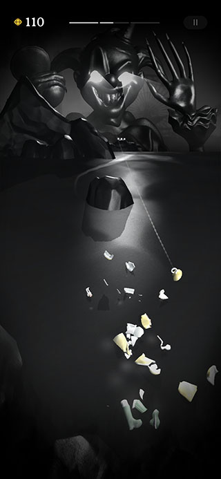 巨大的慣性讓其就如同身處在海浪中,只能任由慣性左右搖擺。而被封印在瓷人中的靈魂只能做出極少的出力。為了躲開障礙,那每一次干預(yù)搖擺的都能感覺到明顯的阻力,玩家通過點(diǎn)擊左右能獲得移動(dòng)控制權(quán)非常小,只能通過盡可能預(yù)判與掙扎才能躲過每一次危機(jī),甚至?xí)袩o力回天,只能期待運(yùn)氣,恰好才能與死亡擦肩而過。
