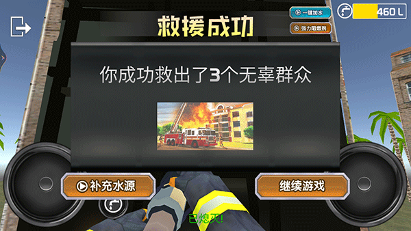 7、屏幕中間有滅火進(jìn)度條,當(dāng)進(jìn)度條為0時(shí),救援成功,即可前往下一個(gè)火災(zāi)地點(diǎn)。