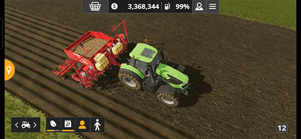點(diǎn)擊“切換車輛”圖標(biāo)會(huì)進(jìn)入你所擁有的不同車輛,開局另外還送了兩臺拖拉機(jī)以及中耕機(jī)、播種機(jī)和拖車。