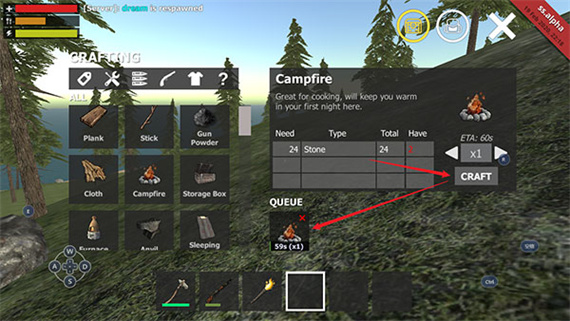 4、右側(cè)顯示出搭建Campfire需要24塊石頭。