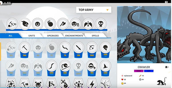第十二關(guān):最終對戰(zhàn),這時(shí)敵方用的是熔巖皮膚,十分強(qiáng)悍,前期兩排劍士一排弓箭手,7個礦工發(fā)展經(jīng)濟(jì)(備上淘金熱*3)后期養(yǎng)兩巨人開路,兩排弓箭手掩護(hù),四排劍士拆雕像(備好劍士狂怒*2,一個拆雕像,一個防援兵),敵方雕像沒血后會變出一個巨人(銀甲大帝),這時(shí)趕緊撤退(防守模式),不要跟他硬剛,因?yàn)樗麄Ψ浅8?。這時(shí)拿出對付巨人的套路,不過千萬不要皮。打敗他之后就會按照劇情發(fā)展,跟著劇情走就好了。