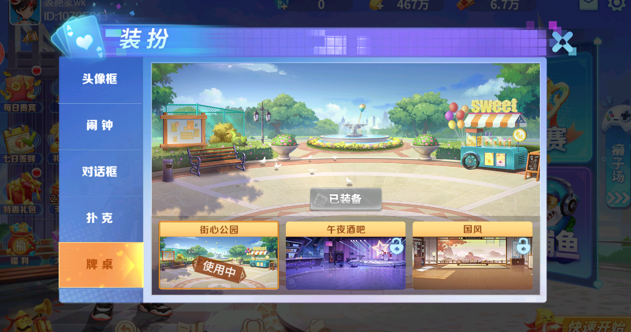 4、在大廳里點擊裝扮,可以更換游戲場景、撲克樣式、對話框等。
