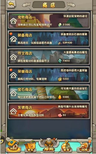 便利店里可以快捷打開各式各樣的商店:寵物、裝備、符文、榮譽、寶石、友情,這些商店都可以在便利店里找到,在考慮自己需要購買些什么去提升戰(zhàn)斗力的時候,便利店是你最好的選擇。