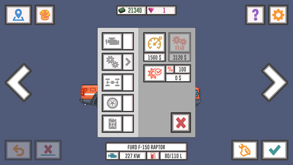 4、這里可以改造貨車的引擎、輪胎、耗油量等。