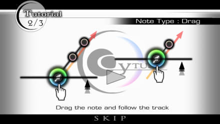 游戲有三種操作音符,分別為普通音符(click)、鎖鏈音符(drag)、長(zhǎng)按音符(hold)