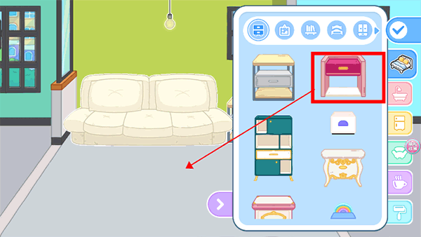 1、首先可以先簡單裝扮自己的房間,需要用手指拖拽物品往下;