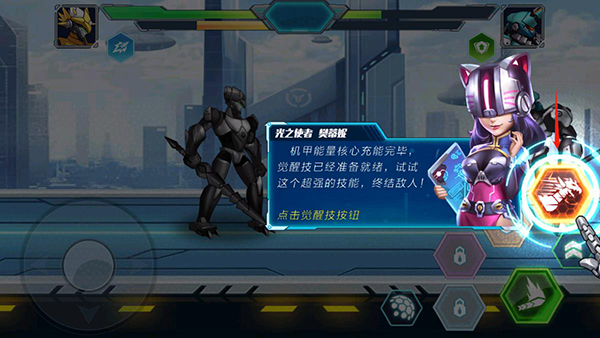6、機(jī)甲能量核心充滿完畢,覺(jué)醒技能已經(jīng)準(zhǔn)備就緒,這個(gè)超強(qiáng)的技能可以終結(jié)敵人;