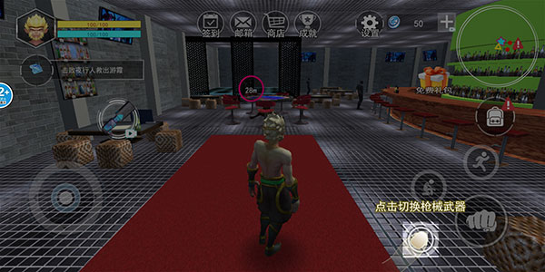 3、領(lǐng)取任務(wù)后,再根據(jù)紅圈的指引,前往對應(yīng)地點(diǎn),點(diǎn)擊右下角切換按鈕可以更換所持武器