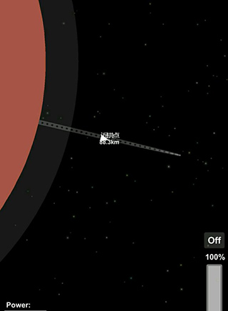 在任意一個拱點減速,直到軌道變成一條幾乎重疊的拋物線。繼續(xù)向下減速,讓拋物線的頂點降低。著陸器預備(請不要在意這個低仿的空中吊機)。進入行星大氣層,繼續(xù)減速。不推薦新人去登陸沒有大氣的星球,因為降落傘無法展開比較難控制。如果登陸器是要重復回收利用的,盡量不要打開降落傘,直接用發(fā)動機來控制速度。成功著陸(圖6)著陸速度不應該超過3米每秒,不然登陸器可能會摔壞。拋掉起重機。