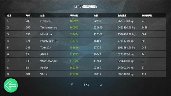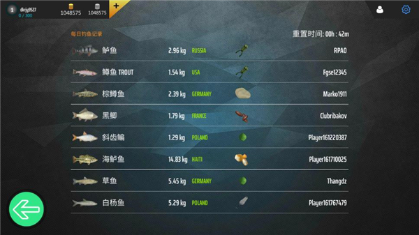 5、在競標賽中,玩家可以看到世界各地的釣魚大神;