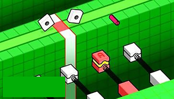 并不是很難的一關(guān),貌似有點像GBA的運輸那關(guān)和NDS組合那關(guān)的合體,按A鍵將螺栓彈來彈去(間隔為一拍),然后看準(zhǔn)時機,在在兩個螺帽運行到傳送帶的紅色區(qū)域時按A+B將螺栓彈出去將兩者組合,這關(guān)的難點在于怎樣一心兩用,另外反應(yīng)也很重要。