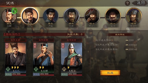 從自己一隊(duì)成型隊(duì)伍上倒推,比如有玩家說(shuō)的第一隊(duì)希望出爆頭,但張遼因?yàn)榻?jīng)驗(yàn)獲取太難并不適合當(dāng)一隊(duì)開荒,這時(shí)候可以用張遼副將夏侯淵+其他兵刃隊(duì)開荒。