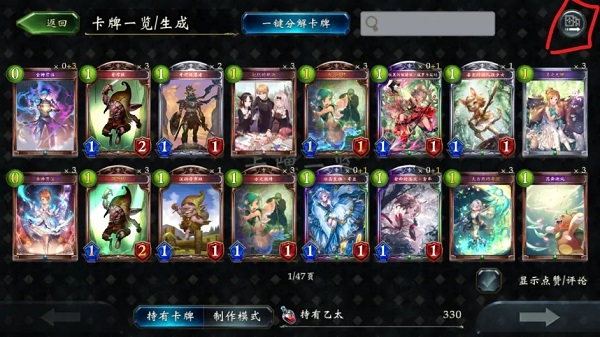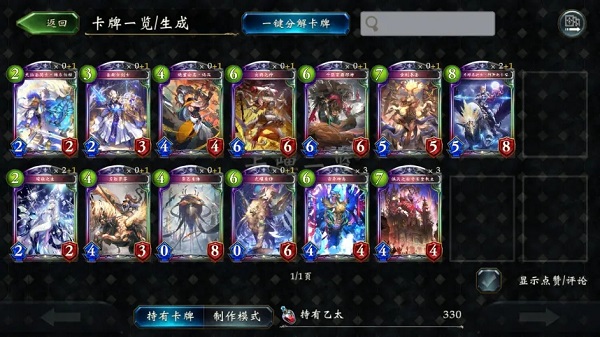 之后我們會(huì)進(jìn)入到牌組編輯/卡牌一覽的界面