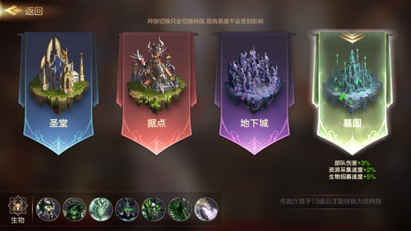 目前亞山大陸上共有圣堂、地下城、據(jù)點(diǎn)、墓園四支,每個(gè)種族下又有特色兵種各七支,確實(shí)是一道不簡單的選擇題。