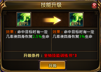升級(jí)坐騎技能需要使用坐騎技能訓(xùn)練書道具。
