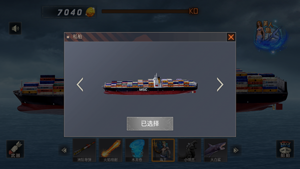 2、選擇類型船只,進(jìn)行沉沒(méi)