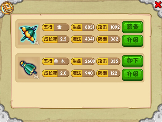 造夢(mèng)西游OL中法寶都有其各自的屬性,不同的屬性在加成方面不同。