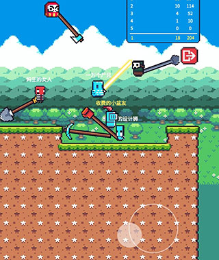 4、控制搖桿操控錘子,靈活地走位,風(fēng)騷地將對(duì)手推出地圖,使自己不斷變強(qiáng)變大