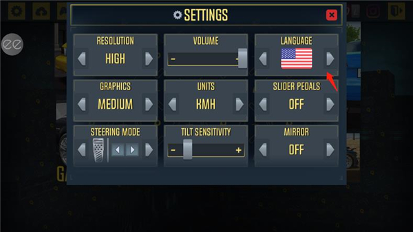 4、點擊左上角的國旗按鈕,進入如圖所示界面,點擊左右按鈕即可切換語言