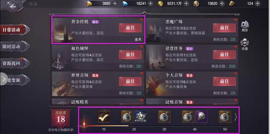 通過完成每日日常任務(wù),達(dá)到一定活躍度,每10點(diǎn)活躍可獲得一個(gè)黃金時(shí)長(zhǎng)徽章,獲得徽章后,會(huì)自動(dòng)延長(zhǎng)黃金掛機(jī)的剩余時(shí)間。