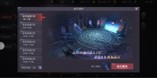 血色城堡是奇跡特色玩法之一。通過消耗【透明披風(fēng)】進(jìn)入血色城堡,擊殺吊橋上的所有惡魔,然后打破城門,消滅守護(hù)雕像的巫師,最后擊破雕像獲得最后的勝利。
