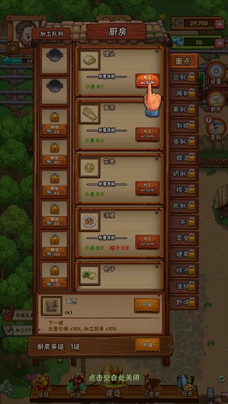 現(xiàn)在學(xué)習(xí)一個(gè)加工制作,點(diǎn)擊外婆也就是廚房的位置,在這里可以加工產(chǎn)品。