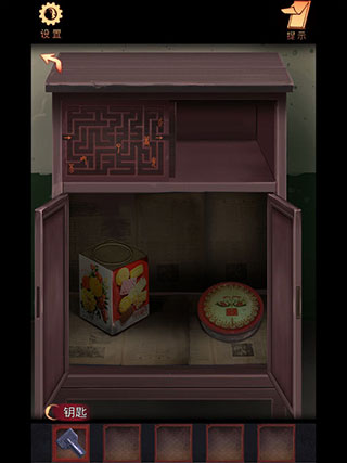 1、左側柜子,根據迷宮順序,依次輸入密碼,拿到【酒】。
