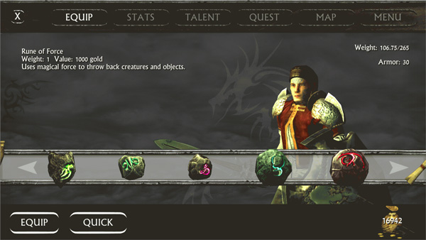 2、游戲的物品攜帶模式比較好,采用重量計(jì)量,而不是傳統(tǒng)的格子方式。你想啊,10個(gè)戒指占10個(gè)格,10把劍占10個(gè)格,但明顯不是相同重量嘛,所以格子不科學(xué)。重量計(jì)量很真實(shí),可以通過(guò)增加體力點(diǎn)數(shù)提升重量值,可以多背點(diǎn)東西。東西超過(guò)體力上限會(huì)速度變慢。