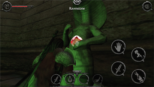 8、進(jìn)入通路最末,打開(kāi)門,一個(gè)大的游泳池,對(duì)面就是掠奪之劍碎片 2 ravenstone 2,BOSS是一條類似龍頭的蛇,從池子里出來(lái),就站在門口處那一截,上下走就可以了,它咬一口有個(gè)間隙停頓,你就上去砍一刀,重復(fù)一下就搞定,然后取得碎片2.返回 艾文城北 North Aven,大法師告訴你去取碎片3,在暗夜精靈王子手里,去荒蠻之地 wasterland尋找。