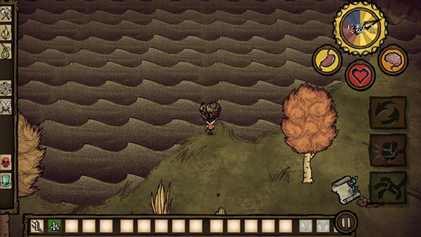 5、游戲就正式開始了,左邊是控制角色方向的,右邊是收集的,玩家需要收集一切能被利用的資源來躲避饑荒。