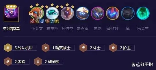 陣容組成:布里茨、孫悟空、德萊文、慎、樂芙蘭、賈克斯、卡蜜爾/蓋倫、沃里克/蕾歐娜陣容羈絆:3/5戰(zhàn)斗機甲2/4/6AI2斗士2護衛(wèi)2黑客1精英