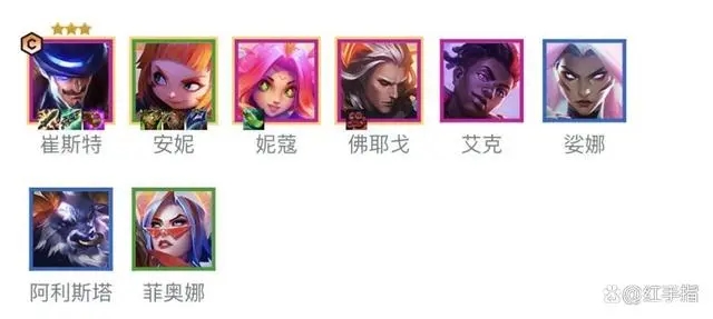 陣容的核心就是前排的坦度,前排優(yōu)先選擇安妮>阿利斯塔,安妮吃福牛羈絆和靈能羈絆,新版本福牛羈絆由原來提供攻速更改為提供雙抗,坦度直接拉滿。
