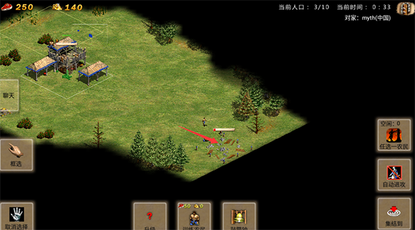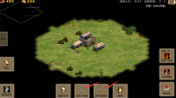 3、選擇好生產(chǎn)建筑和軍事建筑后,讓農(nóng)民過去建筑。