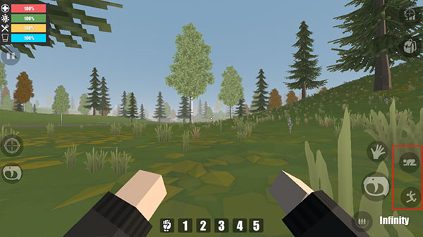 1、左下角的虛擬搖桿是控制人物的前進(jìn)或者后退。