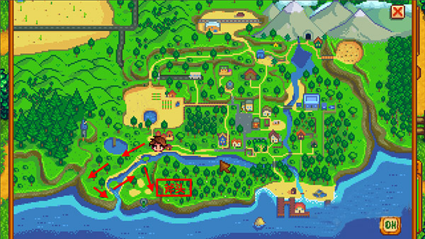 5、從自家農(nóng)場(chǎng)出發(fā)往南走(下面的一條路),然后往右一點(diǎn)點(diǎn)有兩座小木橋,走過(guò)去。