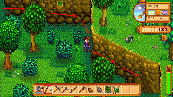 4、斧頭其實(shí)是在瑪爾妮農(nóng)場(chǎng)的南邊。下圖已經(jīng)標(biāo)明位置了,箭頭是行走方向。