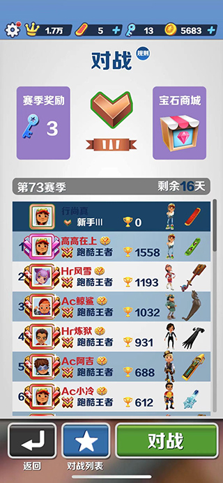 玩家段位和星相同時(shí)以積分排名,積分也相同就看時(shí)間先后,先到的排名高