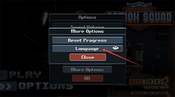 進入游戲后點擊OPITONS-More,再點擊Opetions-Language即可設(shè)置為中文